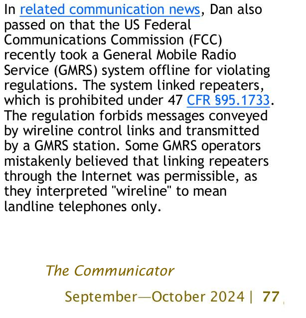 of GMRS repeaters over the internet. While the legality of linking